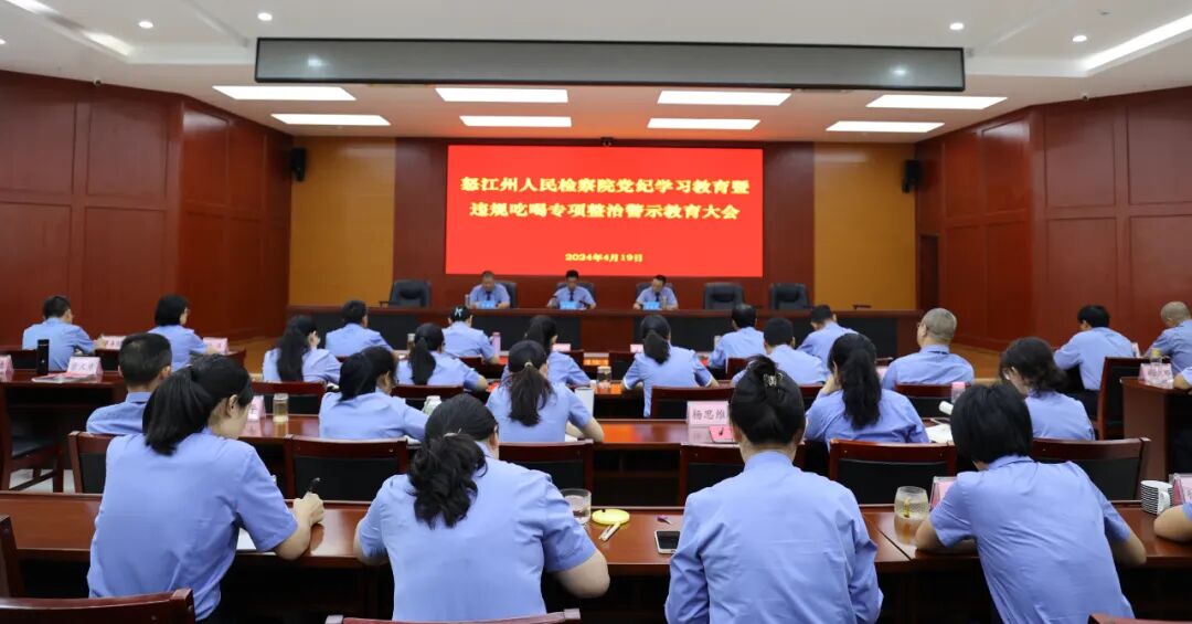 四、深化思想认识,切实增强开展专项整治政治自觉和行动自觉。在推进党纪学习教育中,同步推进清廉怒江建设领导小组安排部署的开展违规吃喝问题专项整治工作,与开展党纪学习教育结合起来。要充分认识到开展违规吃喝问题专项整治是贯彻落实纵深推进清廉怒江建设“十大行动”的具体举措之一,开展违规吃喝问题专项整治,就是防止和纠正党员干部作风偏差、保持党的先进性和纯洁性的重要保障,是铲除腐败滋生土壤和条件、纵深推进反腐败斗争的重要举措,是增强党员干部群众观念、厚植党执政的群众基础。全体检察人员,特别是党员领导干部要充分认识这次专项整治工作的重大意义,把落实好专项整治作为增强“四个意识”试金石,作为捍卫“两个确立”、践行“两个维护”的具体行动。要从通报的违反中央八项规定典型案例中汲取深刻教训,引以为戒,举一反三,时刻绷紧纪律规矩之弦,不触红线、不越底线,不碰高压线。党员领导干部要充分发挥示范带头作用,认真履行“一岗双责”,以“关键少数”带动“大多数”,自觉抵制违规吃喝不正之风,推动全州检察机关作风建设常态化长效化。要纠树并举,建立长效工作机制,强化对党员干部日常教育、监督、管理,筑牢拒腐防变思想防线。