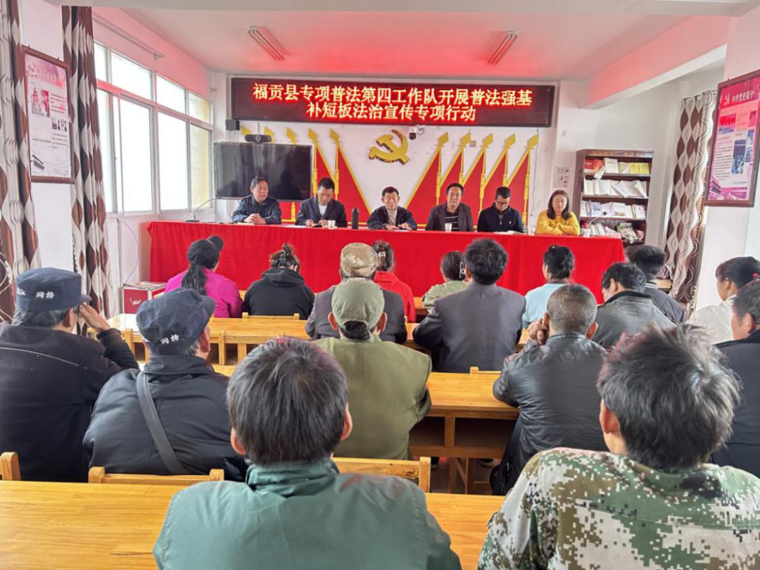 为全面贯彻落实党的二十大精神和习近平法治思想,增强群众法律意识和法治观念,4月21日,福贡县普法专项第四工作队到石月亮乡知洛村开展法治宣讲活动。村干部、驻村队员、党员及妇女群众共38人参加了此次普法宣讲活动。