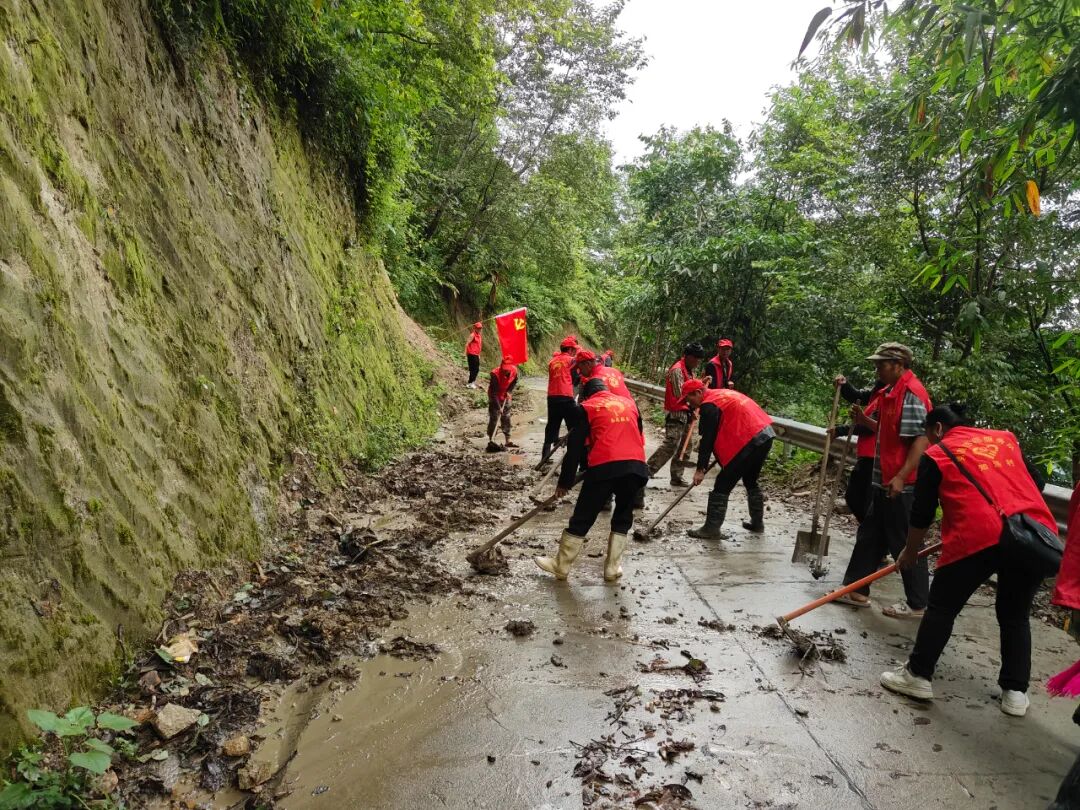 近日,由于受连续特大降雨的影响,知洛村通村、通组道路不同程度受泥石流塌方影响,严重影响了村民出行,为保证村民安全出行,村党总支组织全体党员开展通村、通组道路保通活动,党员们身穿志愿服,各自利用手里的锄头、铁铲等工具,先后对抗谷底小组通组道路、通村道路存在的道路阻断等安全隐患进行了集中清理整治,确保道路疏通,保障群众生命财产安全。一人难挑千斤担,众人能移万座山,此次抢险救灾活动立足于防大汛、抢大险,突出强降雨重点风险区,针对性强化安全防汛硬措施,党员同志以守望相助的精神、昂扬的斗志、忘我的状态,用汗水和努力切实保障人民群众生命财产安全和社会大局稳定。