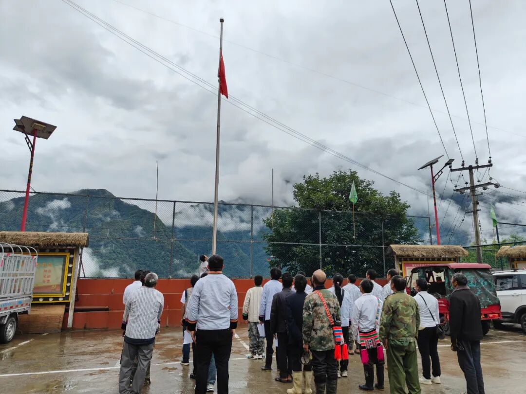 随着国歌响起,五星红旗冉冉上升,知洛村全体党员行注目礼,向伟大的中国共产党致以崇高的敬意和生日的祝福。升旗仪式后,知洛村全体党员共同歌唱《没有共产党就没有新中国》,弘扬党的优良传统和作风,培养知洛村人民的高尚爱国主义情操,激发大家要时刻铭记感党恩、听党话、跟党走,坚定爱国理想信念。