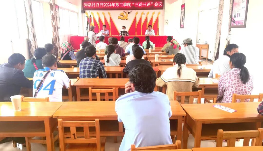 为进一步加强驻村工作队驻村帮扶能力,提高村“两委”班子履职能力,激发村民的内生发展动力。9月24日,知洛村召开2024年第三季度“三讲三评”会议,会议由村党总支书记害阿农主持,村“两委”班子成员、驻村工作队队员、村民小组长、党员、监测户代表、群众代表等26人参加会议。