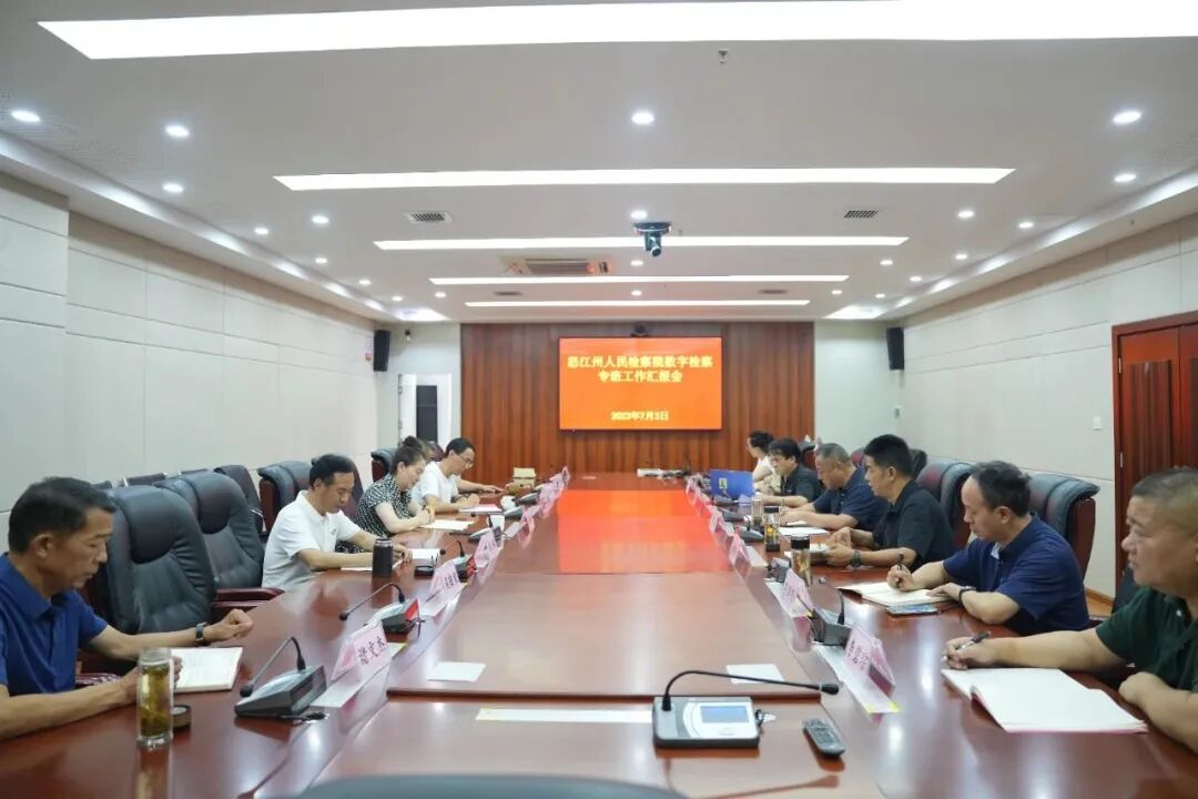 会议由党组书记、检察长可文主持,党组成员、副检察长、数字检察工作领导小组副组长和建培汇报工作开展情况。检察技术与信息部主任李红谦汇报了全州 4 个监督模型参赛作品的制作过程。
