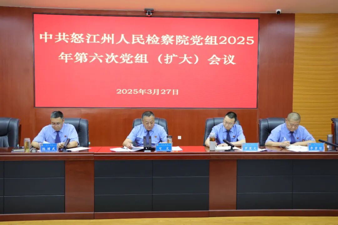 3月27日,中共怒江州人民检察院召开党组(扩大)会议,学习贯彻习近平总书记关于加强党的作风建设的重要论述精神,传达学习中央、省委、州委关于开展深入贯彻中央八项规定精神学习教育有关文件精神,研究部署深入贯彻中央八项规定精神学习教育工作。党组书记、检察长可文主持会议并讲话。