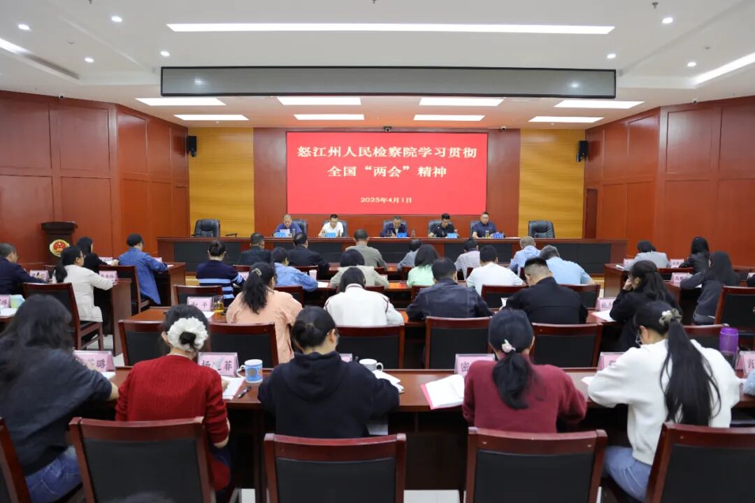 4月1日,怒江州人民检察院召开全院干警大会专题学习2025年全国“两会”精神,研究贯彻落实措施。党组书记、检察长可文主持并讲话。
