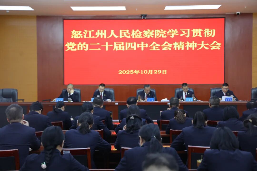 10月29日,怒江州人民检察院召开专题学习会议,集中传达学习党的二十届四中全会精神,深入研读《中国共产党第二十届中央委员会第四次全体会议公报》。党组书记、检察长可文主持会议并作讲话,全院干警参加会议。