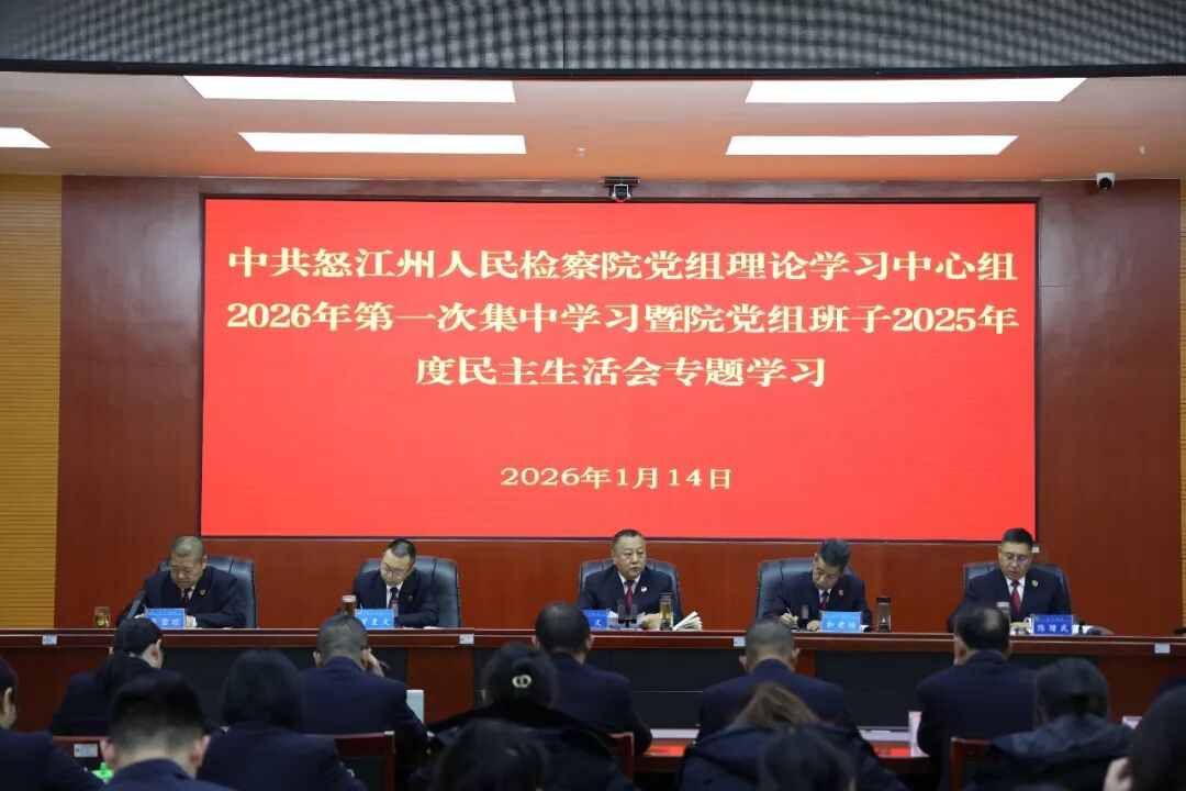 1月14日,怒江州人民检察院党组理论学习中心组开展2026年第一次集中学习暨院党组班子2025年度民主生活会专题学习。党组书记、检察长可文主持会议并讲话。
